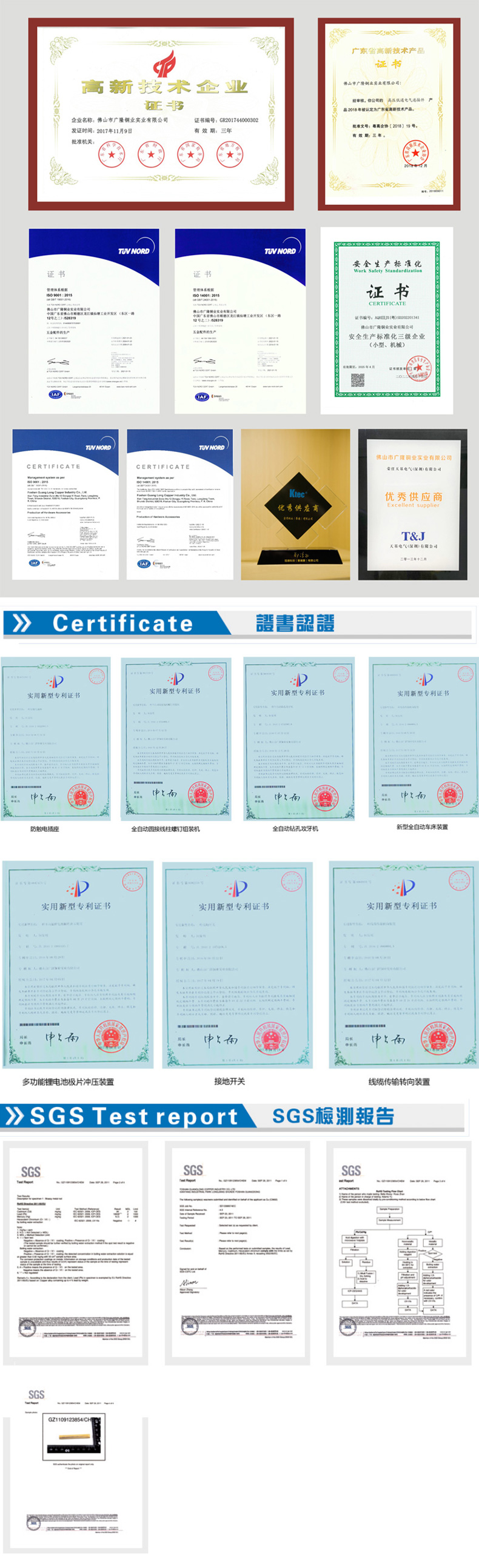 Established in 1998, Foshan Guang Long Copper Industry Co., Ltd. isShunde District, Foshan City, a beautifullocated in Longjiang Town,furniture manufacturing hub. We specialize in the integrated productionof AC PIN for mobile phone chargers, electrical power PINS,SWITCHTERMINALS,and injection moldingfor PLUG INSERTS.We specializein the research and development,manufacturing,and processing ofelectrical and electronic products,various hardware contact springs,waterproof connectors, medical device components, and precision hardwarepanel shells. After more than 20 years of development, we have a modernstandard factory building of 20000 square meters and a large-scale hardwareproduction and processing factory with over 120 employees.